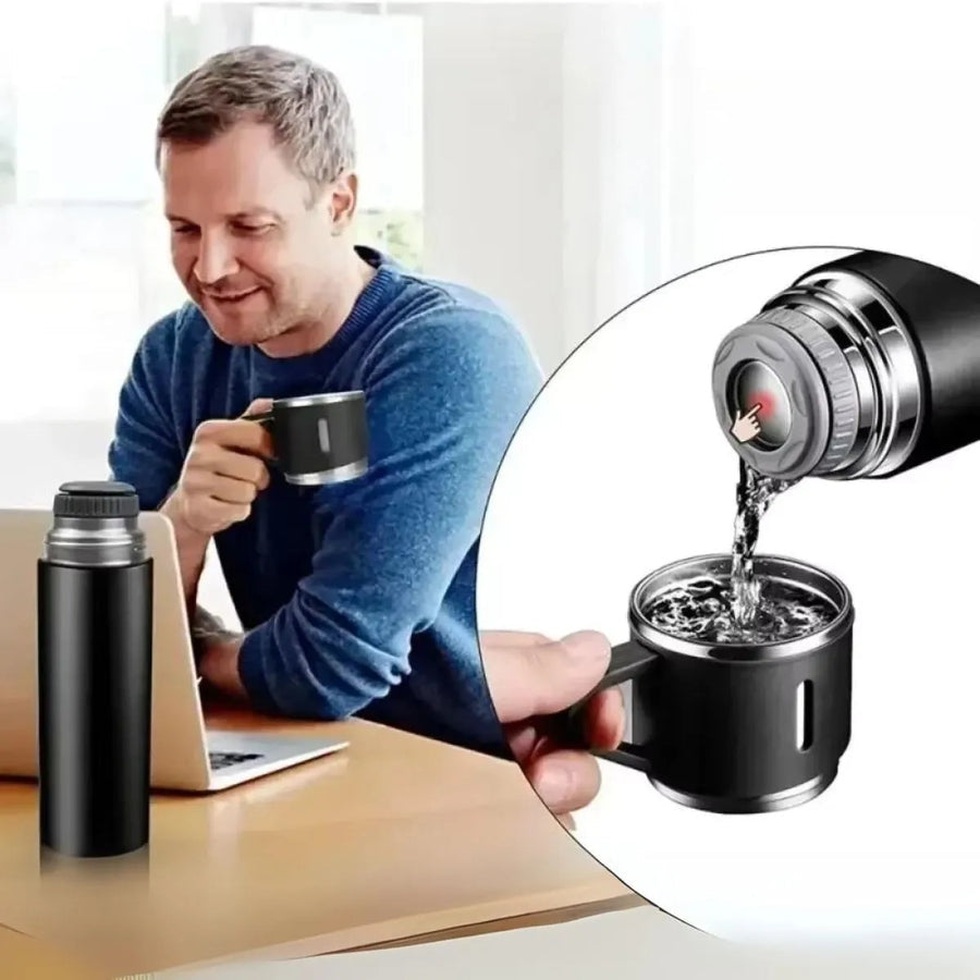 A Garrafa Térmica em Inox com 3 Canecas foi pensada para quem não abre mão de praticidade, resistência e estilo no dia a dia.