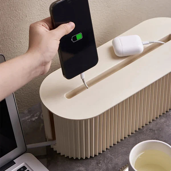 A Caixa Organizadora de Cabos e Fios com Tampa Antipoeira traz uma solução moderna e eficiente para eliminar a bagunça de fios, extensões e carregadores em qualquer ambiente.